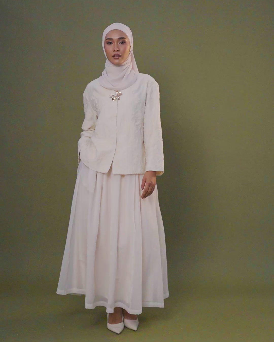 Comfortable and elegant. The Aura Set features ornate embroidered floral swirls that add texture and visual depth. Soft and airy, the A-line relaxed bodice is made from breathable, embroidered mixed-linen, flowing gracefully to suit all body types.